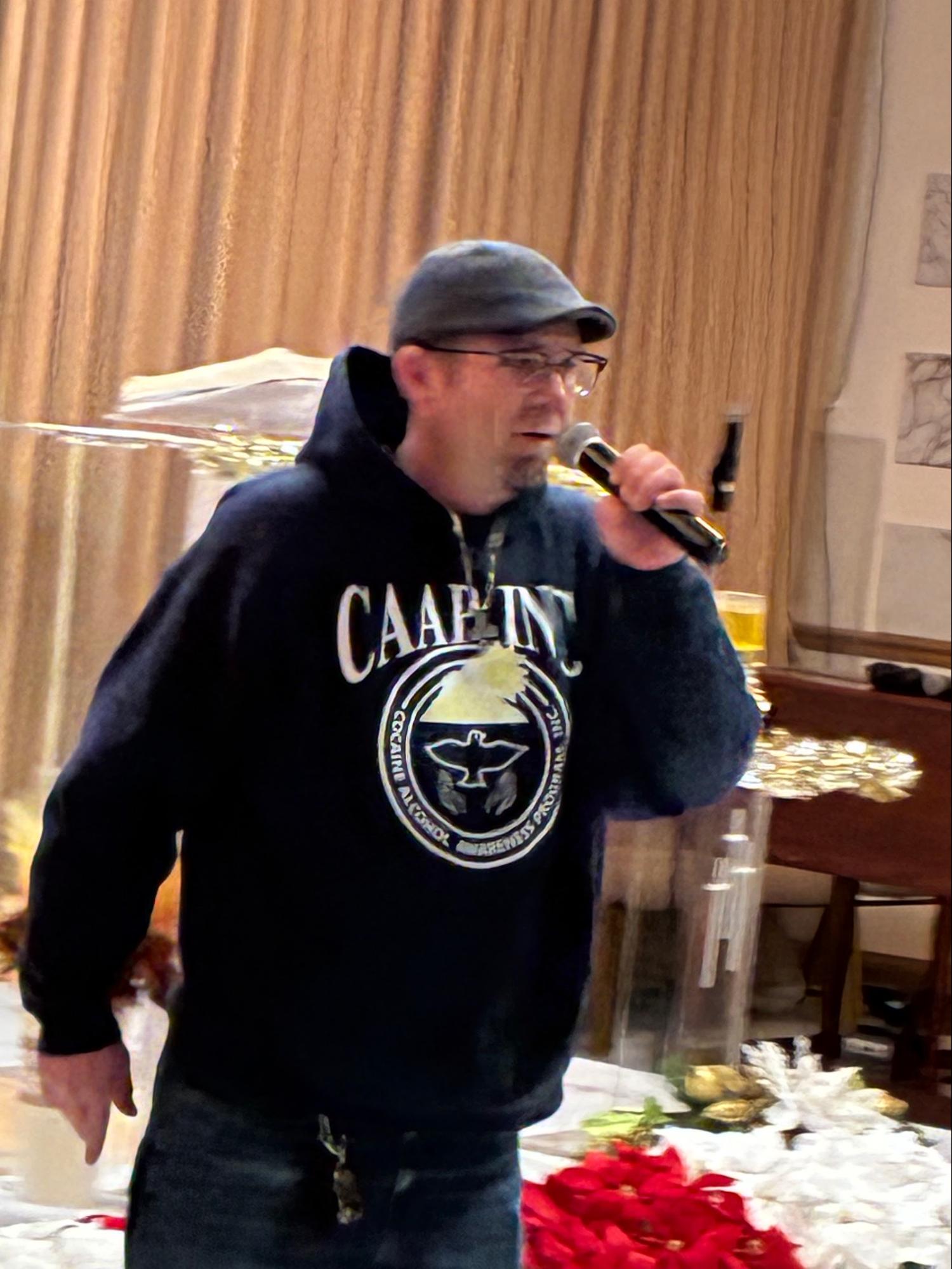 Niko Brown speaking at the Shelby Safe Holiday Peace Festival